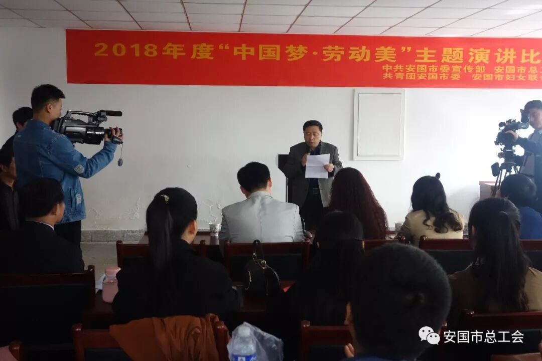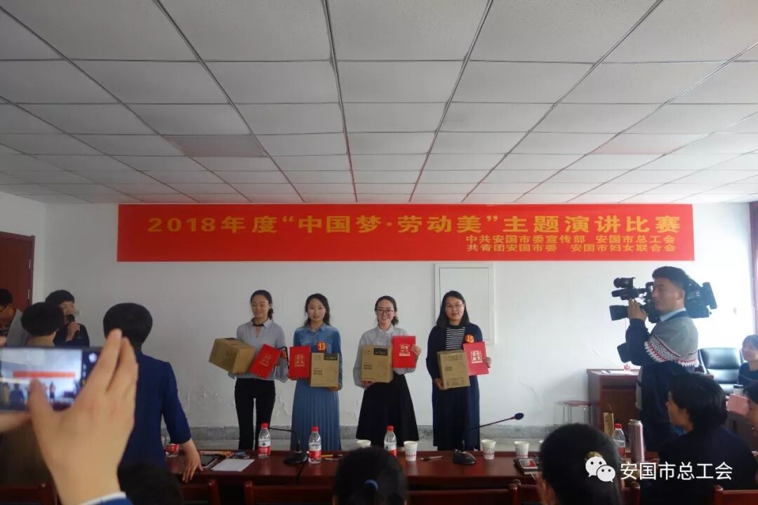 4月12日,我市总工会携手市委宣传部、共青团安国市委、市妇联共同举办了2018年度“中国梦. 劳动美”主题演讲比赛。