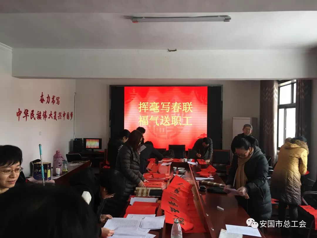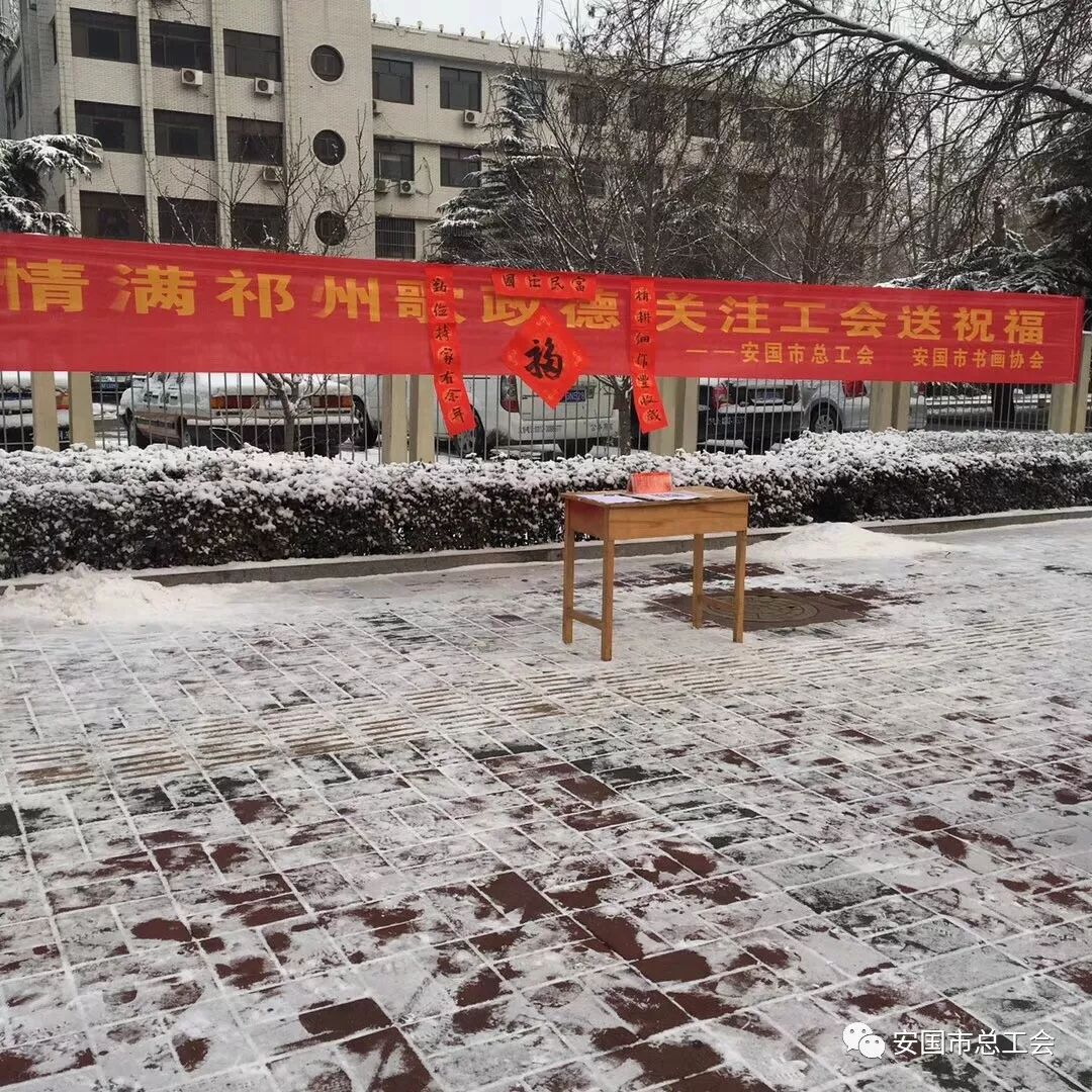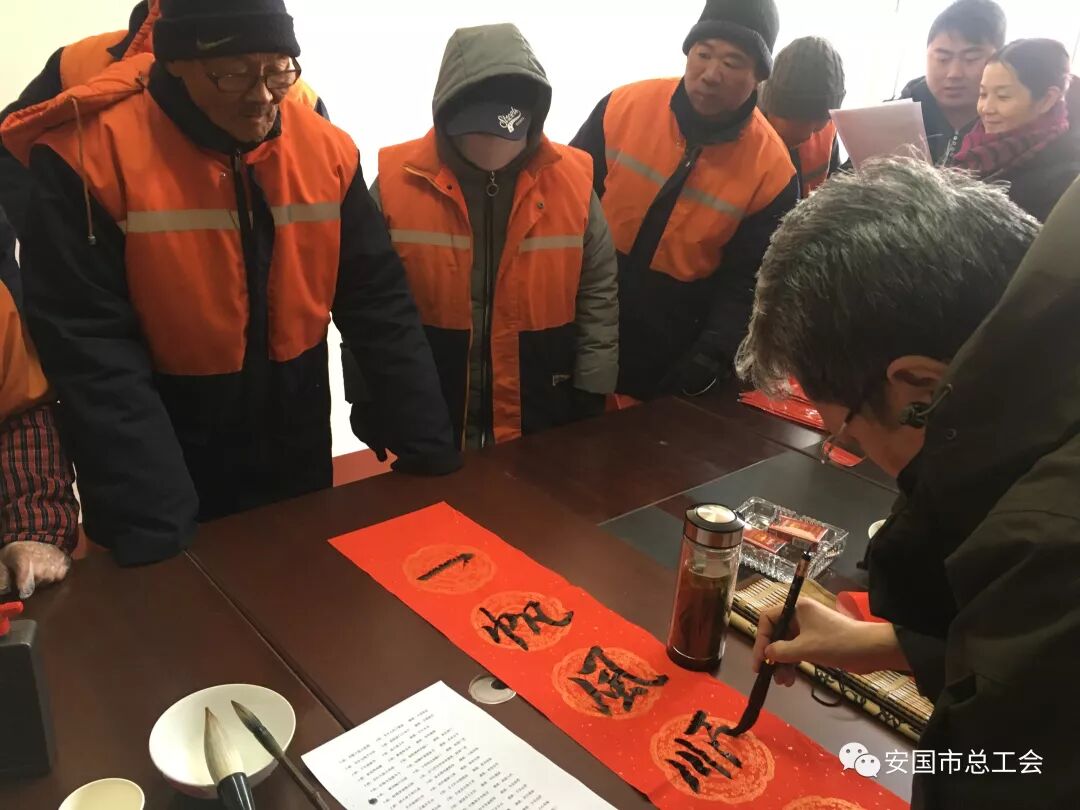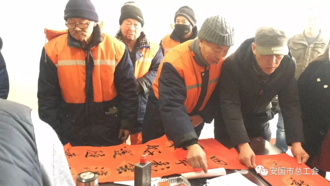 春节将至,为更好地弘扬中华传统文化,给广大职工、群众朋友营造欢乐祥和喜庆的节日气氛,安国市总工会、安国市书画协会共同举办了“挥毫书联传爱意 妙语贺节送真情”活动,于腊月初六和吉祥腊八,现场书写春联,免费送职工群众和环卫职工。